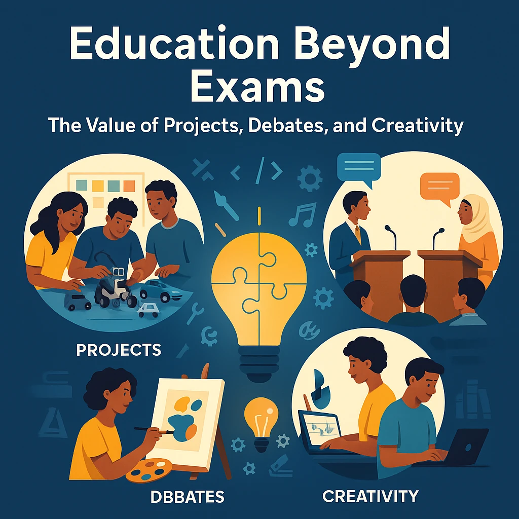 - Education beyond exams values creativity, projects, and debates as much as test results.