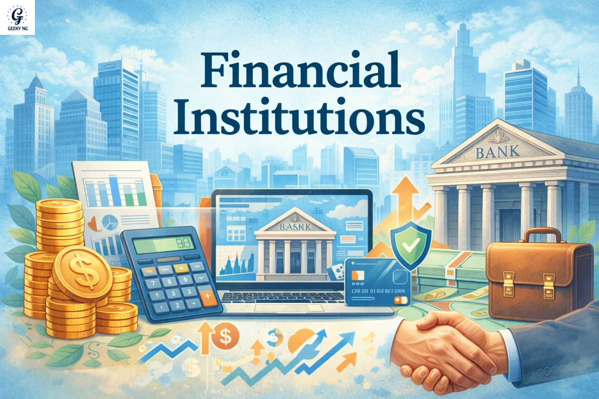 Financial institutions are organizations that deal with money and provide financial services to individuals, businesses, and the government. They help people to save, borrow, invest, and transfer money safely and conveniently.